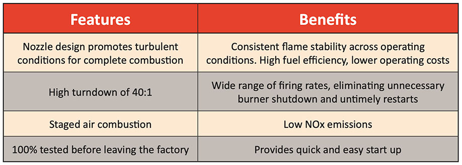 For burner applications that require 0.5 to 15 MM BTU/hr, PyroFlex Package Burners offer several flexible controller options and 40:1 turndown. Pyroflex burners accommodate a wide variety of fuels from low BTU gases to butane. Higher turndowns available for specially designed systems. Gas trains are approved for use in all countries and motors are available for 60Hz and 50Hz frequencies.